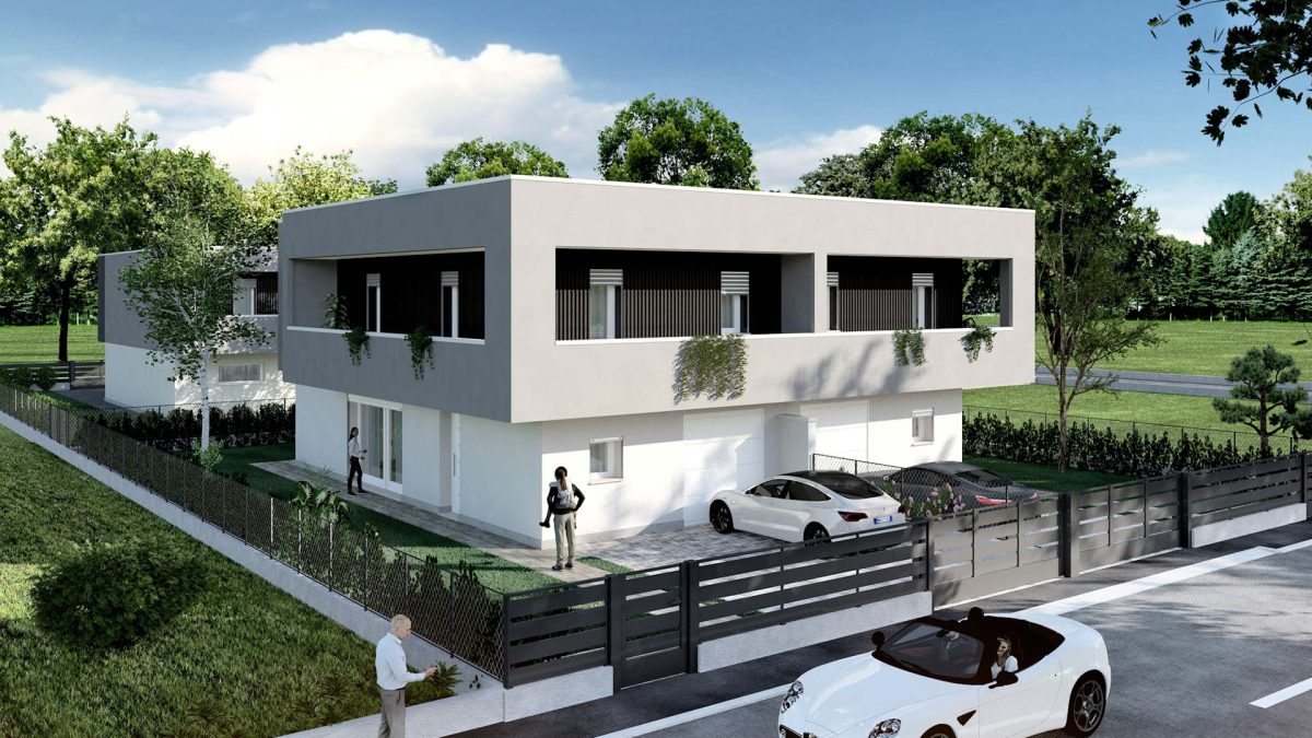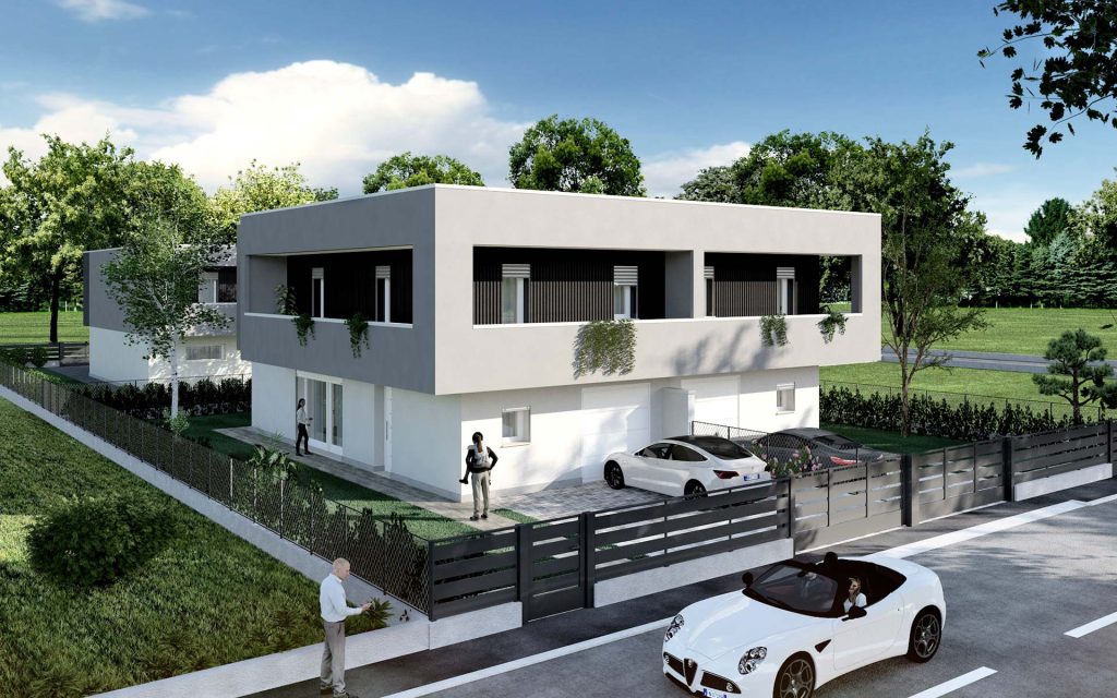 PI SRL propone in vendita prestigiosa porzione CHIAVI IN MANO completamente indipendente, CON POSSIBILITA’ DI PERMUTA, studiata per offrire il massimo comfort con finiture curate nei dettagli, personalizzabili, in classe energetica “A4”. La soluzione immersa in contesto verdeggiante ma comoda a mezzi e servizi, si compone al piano terra da: soggiorno con angolo cottura o cucina separata con accesso diretto al giardino mediante vetrate scorrevoli, bagno, e garage collegato. Salendo al primo piano, si accede alla zona notte dove troviamo: zona lavanderia, secondo bagno e quattro camere di cui una padronale dotata di terzo bagno privato oltre ad ampio terrazzo abitabile. L’elevato standard qualitativo nella progettazione architettonica garantisce ottime prestazioni energetiche sia nella stagione invernale che in quella estiva grazie ad un involucro costituito da Blocchi cassero in legno cemento. L’immobile e’ dotato di: infissi basso emissivo in pvc con gas argon, impianto di riscaldamento in pompa di calore completamente elettrico, impianto fotovoltaico e ventilazione meccanica controllata per il ricircolo dell’aria.